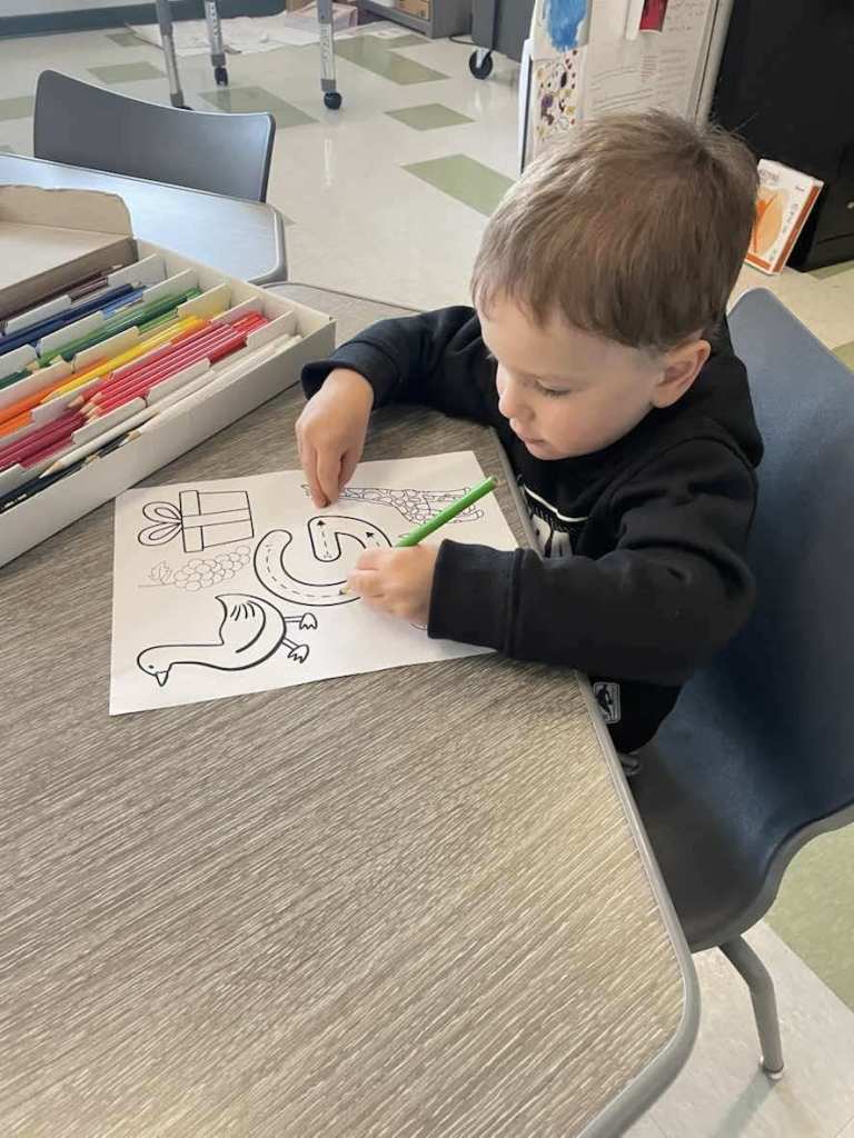 - Tracing pages that build pre-writing skills and shape recognition