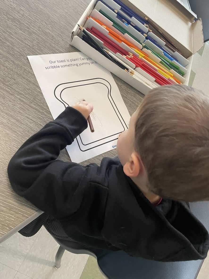 - Scribble pages to encourage free expression and early pencil control